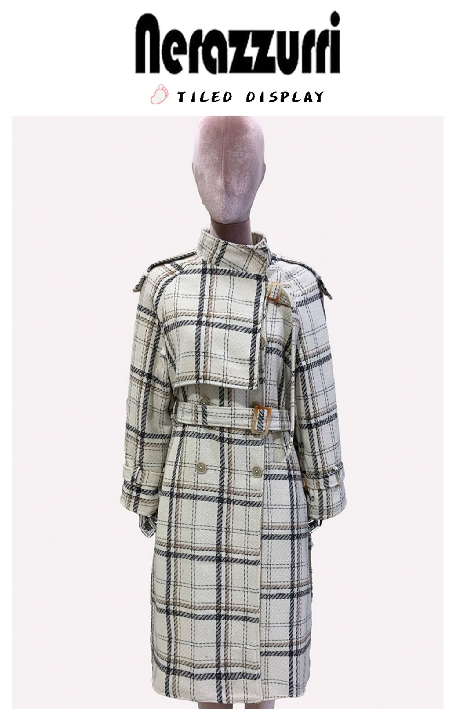 Abrigo de lana de otoño e invierno de alta calidad para mujer, largo y grueso.
